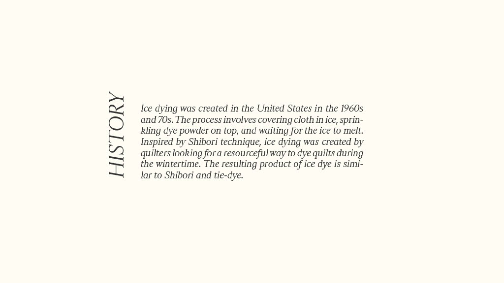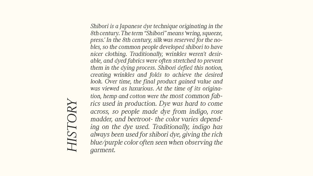 Create an original textile design through research, swatch development and experimentation, and finally apply it to a thrifted/second-hand garment. Choose three techniques to research and develop swatches on cotton or silk fabrics before applying one or more techniques to your final garment.